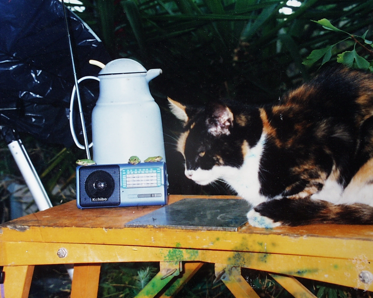 Katzenfrösche Ob die Tiere Radio Neppstar hören bleibt ungewiß! Fest steht, daß es sich um keine Atrappen handelt, sondern um eine Katze, die sich mit quieklebendigen Laubfröschen angefreundet hat. (c)2008 Joli & Mali, LFFI v1.0 im Sinne von http://www.neppstar.net |